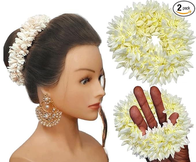 Huntlie 2 Pcs Hair Mogra Scented Rubber band Gajra Hair accessories for Women And Girls, Hair Flower Bun Artificial Gajra Scrunchies