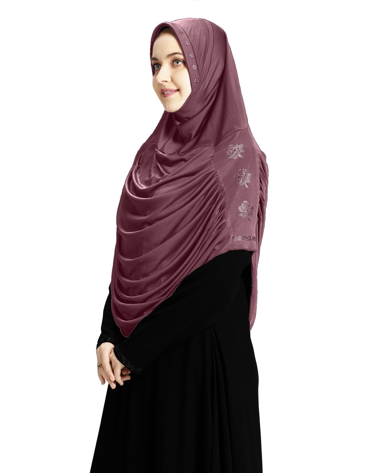 Mehar Hijab's Women's Elegant Pleated Instant Hijab with Glittering Stone Embellishments | Modest & Stylish Aasimah Hijab