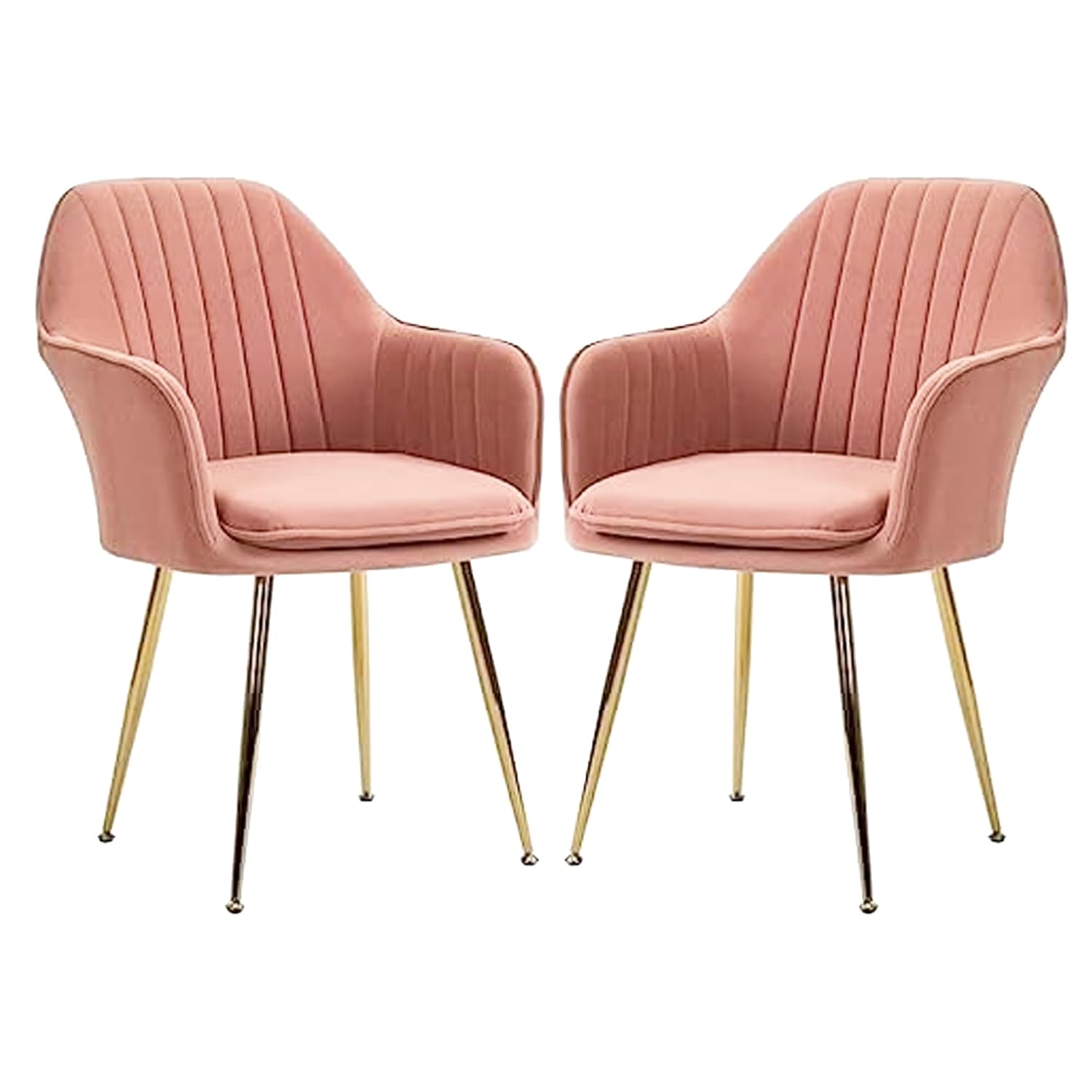 Set of 2 Velvet Dining Chairs, Cushion Seat Chair for Living Room Bedroom Restaurant, Modern Contemporary Upholstered with Polished Golden Metal Legs (Pink)